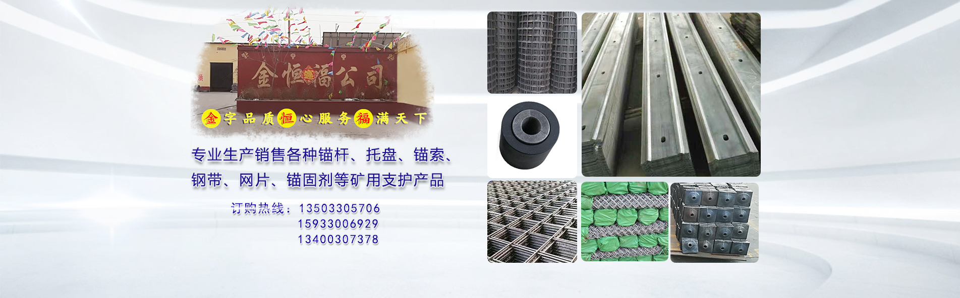 永年區(qū)金恒福礦用支護(hù)緊固件有限公司位于全國(guó)標(biāo)準(zhǔn)件集散地---河北永年.本公司始建于2000年,是永年縣建廠(chǎng)較早的一家專(zhuān)業(yè)生產(chǎn)礦用產(chǎn)品的大型企業(yè),是一家實(shí)力 雄厚的集生產(chǎn)、經(jīng)銷(xiāo)為一體的企業(yè).本廠(chǎng)產(chǎn)品種類(lèi)齊全,質(zhì)量上乘,技術(shù)要求嚴(yán)格、服務(wù)周到,在同行業(yè)中擁有高的聲譽(yù),深受新老客戶(hù)的好評(píng)。主要生產(chǎn):16-22、左旋、右旋、圓鋼錨桿以及各種奇難異型錨桿系列產(chǎn)品,球型墊,錨固劑及托盤(pán)系列產(chǎn)品,可訂做單頭絲,雙頭絲,地腳絲,對(duì)外賣(mài) 料。 隨著高產(chǎn)高效礦井的大量建設(shè),錨桿支護(hù)已成為礦井巷道的主要支護(hù)方式,代表了煤礦采煤巷道的主要發(fā)展方向,隨著綜采機(jī)械化程度的不斷提高,對(duì)支護(hù) 材料的要求也不斷提高 我公司生產(chǎn)的產(chǎn)品嚴(yán)把質(zhì)量關(guān),使產(chǎn)品遠(yuǎn)銷(xiāo)山西、陜西、河南、內(nèi)蒙、山東等省市地區(qū)及全國(guó)各大,中,小城市,出口亞洲,歐洲等多個(gè)國(guó) 家,受到廣大用戶(hù)的一致好評(píng)。我廠(chǎng)產(chǎn)品優(yōu)良,信譽(yù)至誠(chéng),市場(chǎng)占有率較高。并以更高,更快的速度,發(fā)展壯大。 在改革開(kāi)放的經(jīng)濟(jì)大潮中,我廠(chǎng)正趨于起步發(fā)展階段,因而我們真誠(chéng)的與各銷(xiāo)售商建立良好的合作關(guān)系,建立一條良好的生產(chǎn)、銷(xiāo)售渠道,共同開(kāi)拓市場(chǎng),共贏(yíng)雙 利。在滾滾的經(jīng)濟(jì)浪潮中,誠(chéng)信、務(wù)實(shí)、創(chuàng)新守紀(jì)的經(jīng)營(yíng)理念是我們制勝的法寶,這是任何的競(jìng)爭(zhēng)對(duì)手都無(wú)法模擬的核心競(jìng)爭(zhēng)力. 我們發(fā)展到今天當(dāng)然離不開(kāi)各位老朋友的鼎立支持,因?yàn)槲覀冊(cè)?jīng)同舟共濟(jì);同時(shí)我們也懷著一顆真誠(chéng)的心, 盼望著結(jié)識(shí)更多新的合作伙伴,為進(jìn)一步擴(kuò)大市場(chǎng), 本廠(chǎng)及直銷(xiāo)處熱烈歡迎更多的商客朋友來(lái)電來(lái)函、洽談合作、共創(chuàng)美好明天!我們的口號(hào)是“于客戶(hù)所需,于客戶(hù)所急,以更大的優(yōu)惠價(jià)格使新老客戶(hù)稱(chēng)心如意!” “追求卓越”是我們的主題,我們將勵(lì)精圖治,再創(chuàng)高效,優(yōu)良的產(chǎn)品質(zhì)量,為煤礦企業(yè)提供多方位的服務(wù)。